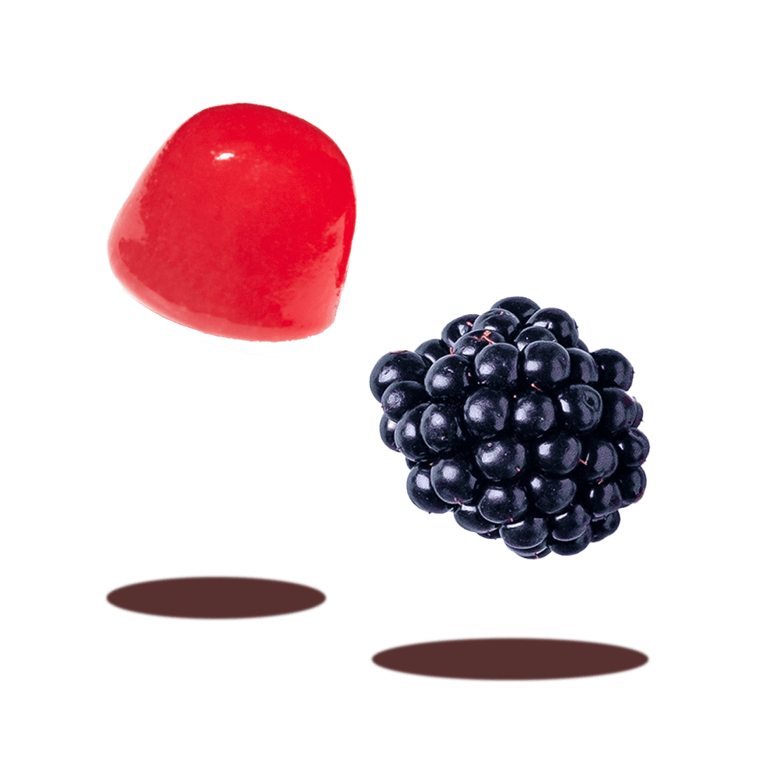 Jarabe de glucosa, azúcar, agua, gelificante (pectina), acidulante (ácido cítrico), vitamina E (acetato de DL-alfa-tocoferilo), vitamina C (ácido L-ascórbico), maltodextrina, colorante (antocianinas), corrector de acidez (citrato trisódico),citrato de zinc, aceite de coco, aromas naturales, vitamina A (acetato de retinilo), yoduro de potasio, ácido pantoténico (D-pantotenato cálcico), vitamina D (ergocalciferol), antiaglomerante (cera de carnauba), vitamina B6 (clorhidrato de piridoxina), vitamina B12 (cianocobalamina), folato (ácido pteroilmonoglutámico), D-biotina, bitartrato de colina.
